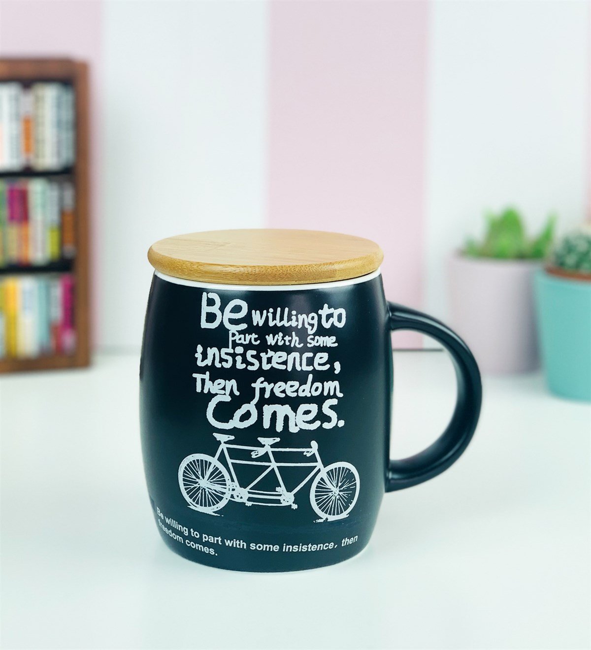 Ahşap Kapaklı Mottolu Siyah Kupa