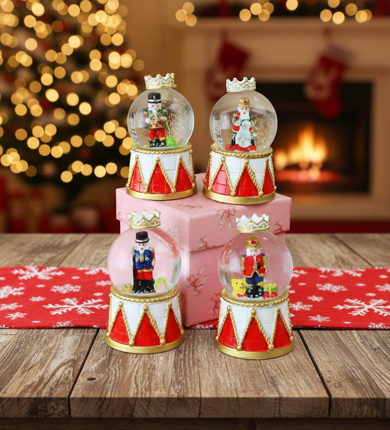 Klasik yılbaşı dekorasyonunun vazgeçilmez figürü fındıkkıran, bu şık kar kürelerinde hayat buluyor. Kral tacı detaylı altlığı ve ışıltılı kar efekti ile hem gündüz hem gece büyüleyici bir atmosfer yaratır. İçinde farklı fındıkkıran figürleri bulunan bu küreler sallandığında kar taneleri uçuşur, ışıklarıyla ortamınıza sihirli bir hava katar.