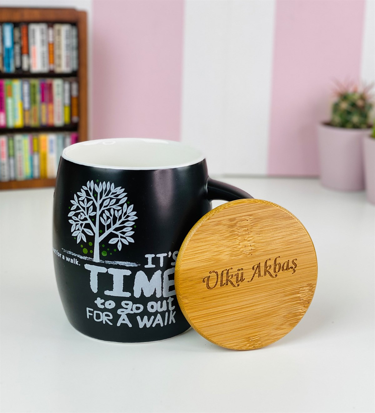 Kişiye Özel Ahşap Kapaklı Mottolu Siyah KupaGiftmodaGM-2458-Ağaç-K-O