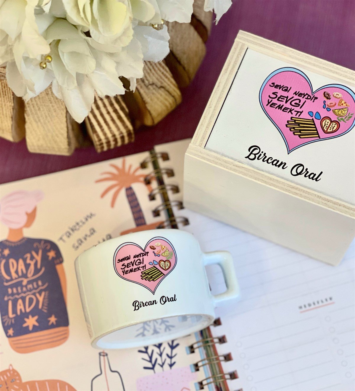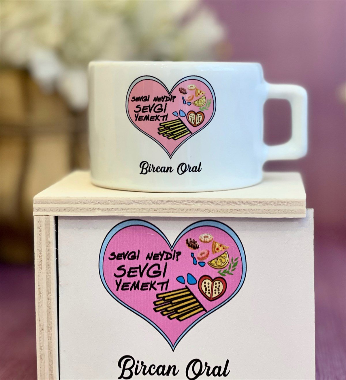 Kişiye Özel Sevgi Yemekti Tasarımlı Kutulu Kupa
