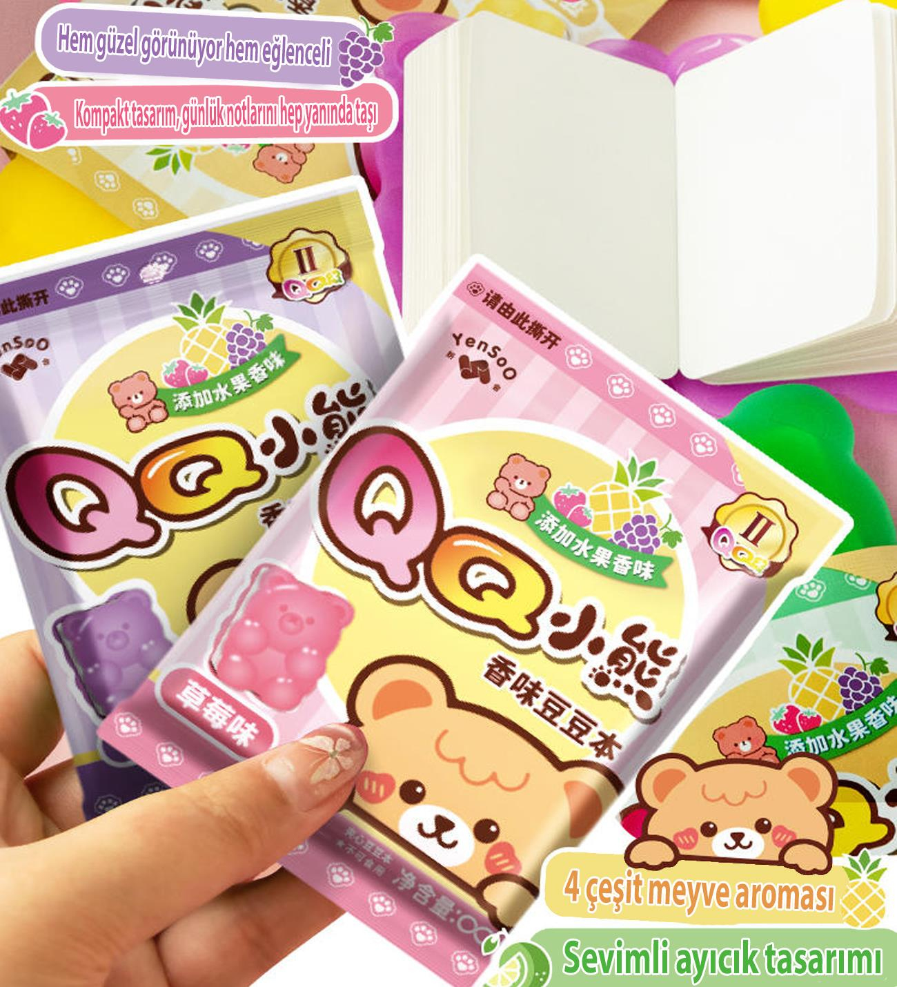 Sevimli Kokulu Bilnbox serisine ait ayıcık tasarımlı mini not defteri, tatlı görünümü ve hoş meyve aromalı kokusuyla dikkat çekiyor. Kompakt boyutuyla çantada kolayca taşınır ve her an yanınızda olur.